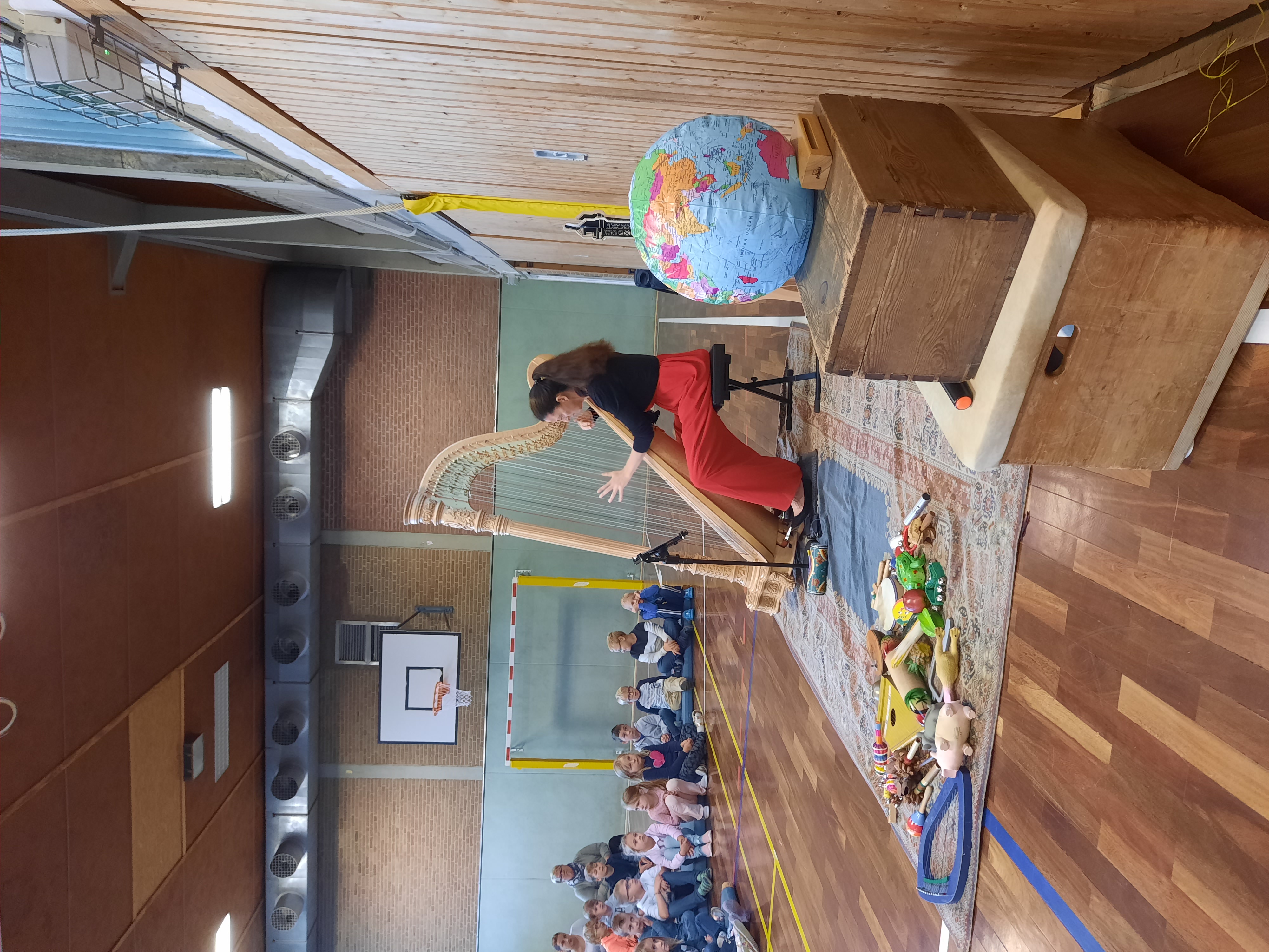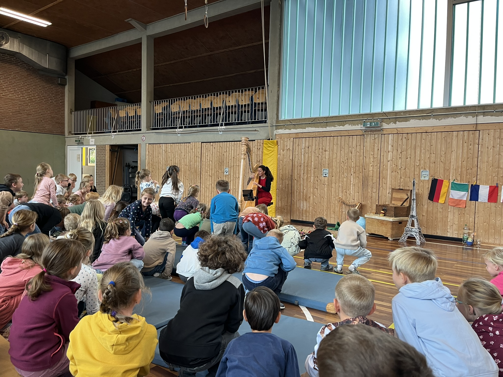 Im September erhielt der Grundschulstandort Welldorf ein ganz besonderes  musikalisches Geschenk von der Hospizbewegung Düren-Jülich e.V.  Anlässlich des 20. Geburtstages des Projektes „Hospiz macht Schule“, das bereits mehrmals an den beiden Standorten der Nordschule stattgefunden hatte, beschenkte die Hospizbewegung die Kinder mit einem Besuch der Harfenistin Silke Aichhorn.