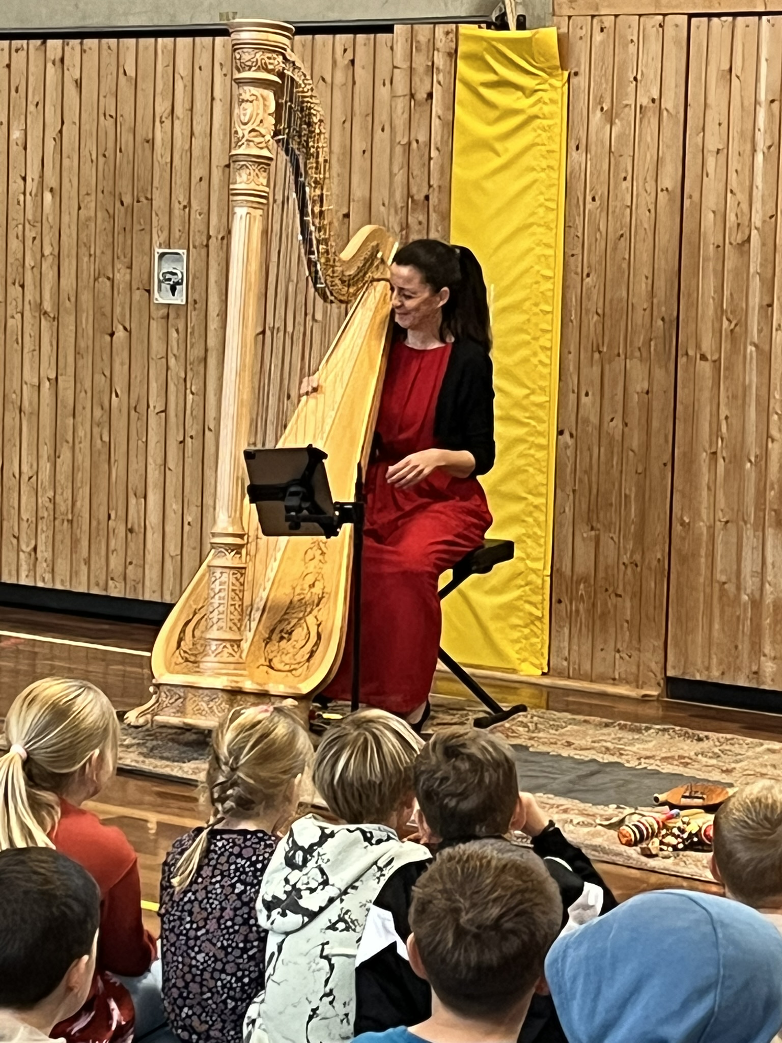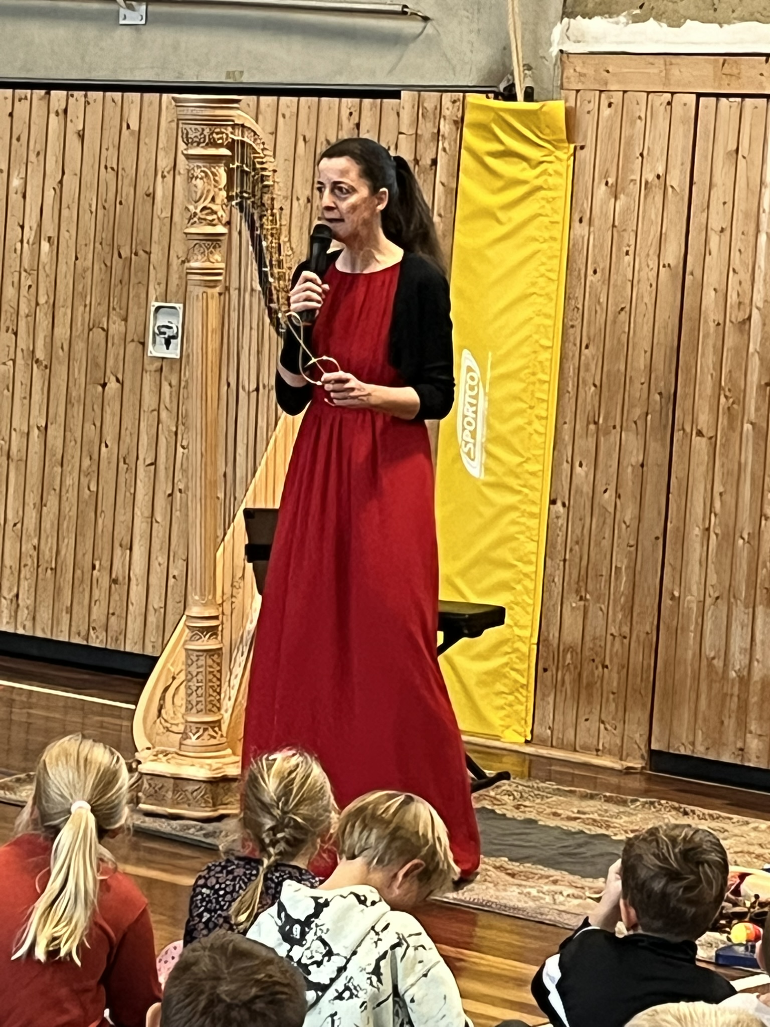 Auf ihrer Harfe ließ sie schöne Weisen aus Deutschland, Irland, Frankreich,  dem Kongo, den USA, Japan, Tschechien und Österreich erklingen und erzählte Geschichten zu den Musikstücken und deren Komponisten.