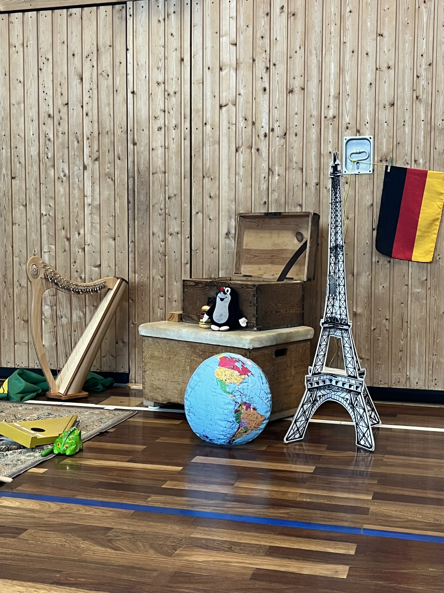 Bevor es ins nächste Land ging, galt es Rätsel zu lösen, gemeinsam Instrumente zum Klingen zu bringen und Mitbringsel für die Schatzkiste einzupacken. Zum Abschluss konnten die Mädchen und Jungen selbst eine Kinderharfe zum Klingen bringen.