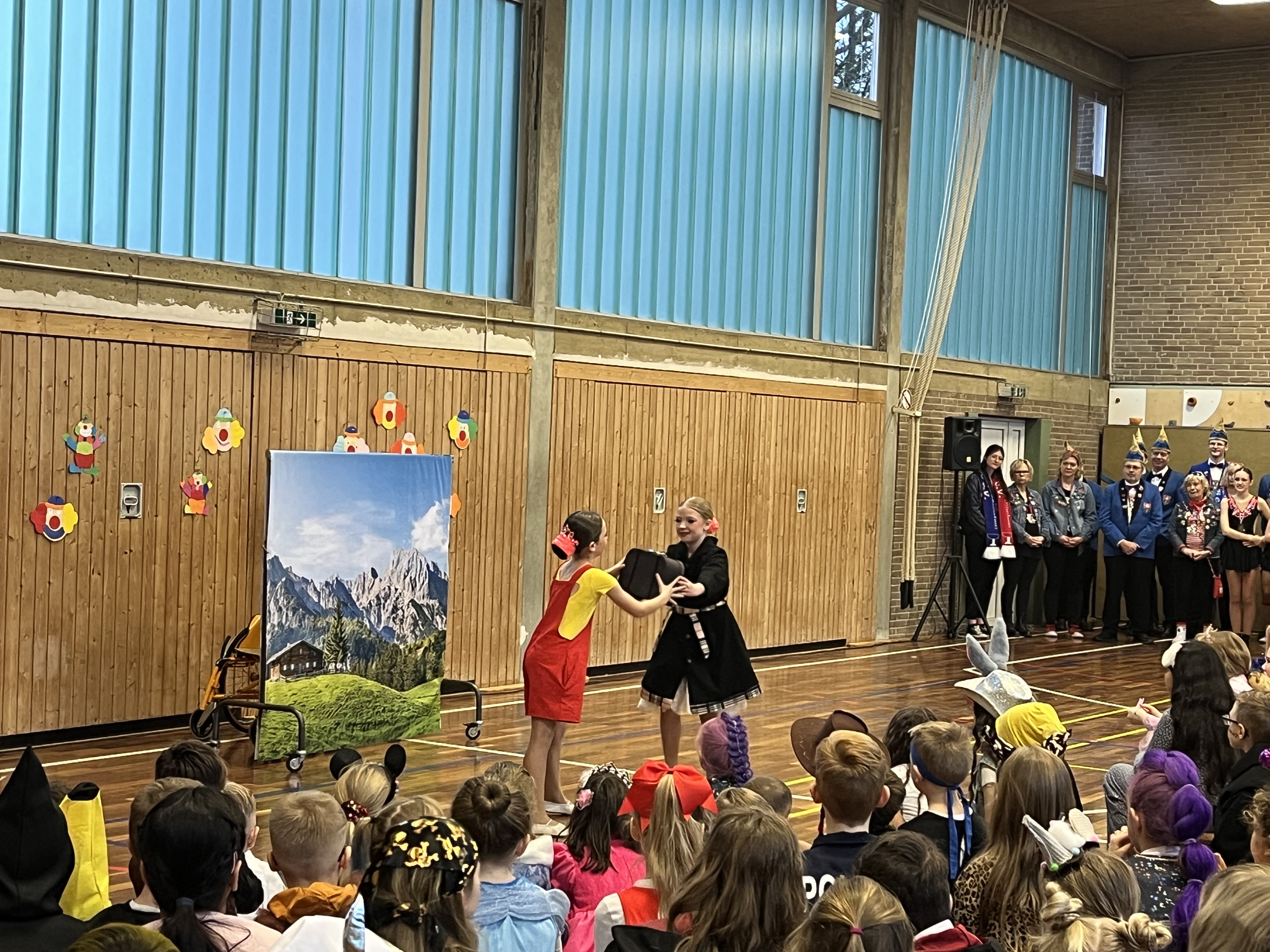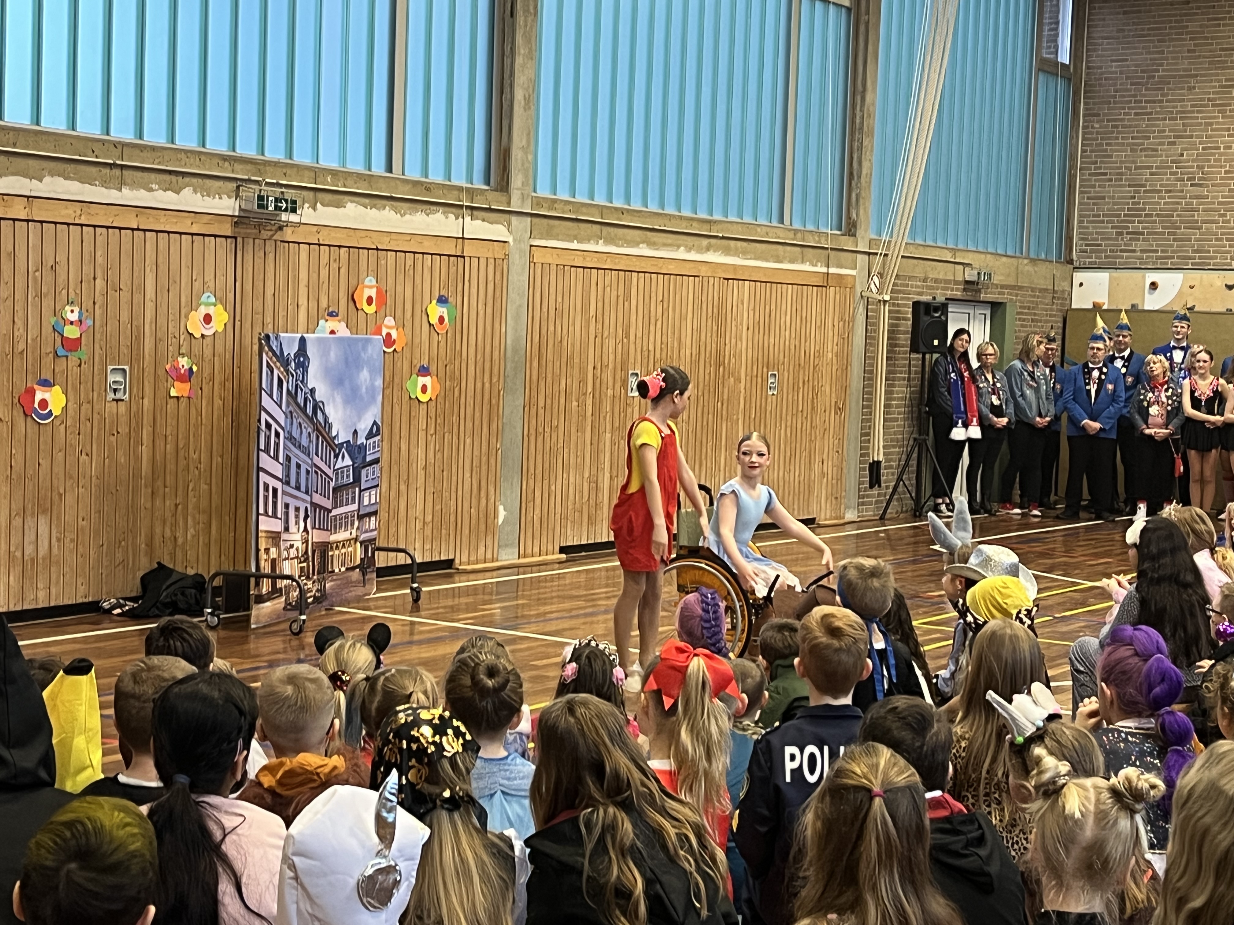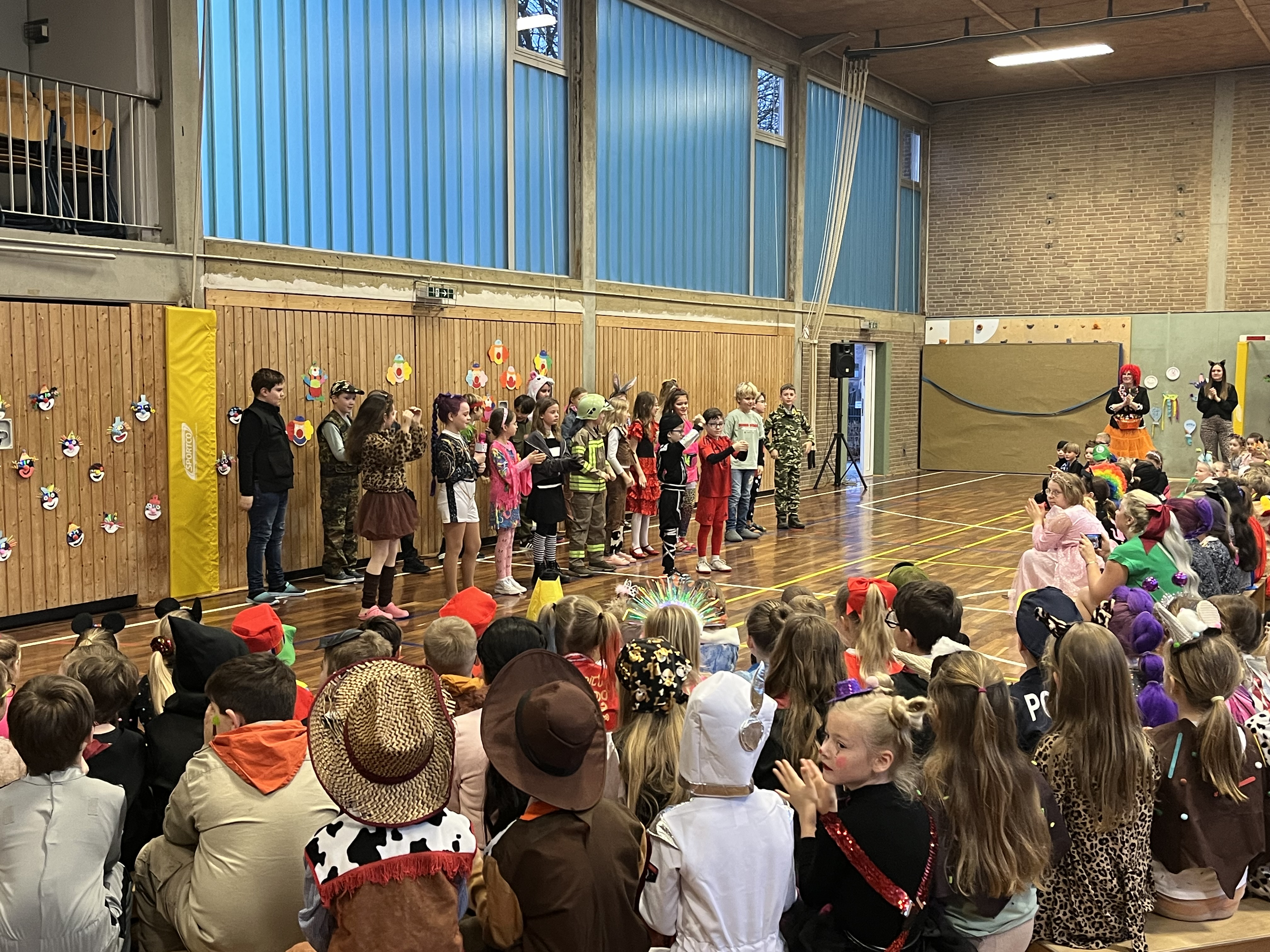 Das Team der Grundschule lud schließlich mit seinem Tanz zu Jeck Yeah alle kleinen Jecken zum Mittanzen ein, bevor in den Klassen und in der Turnhalle geknabbert und kräftig weitergefeiert wurde.